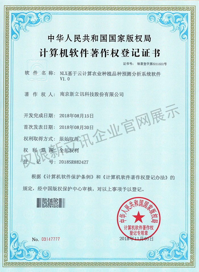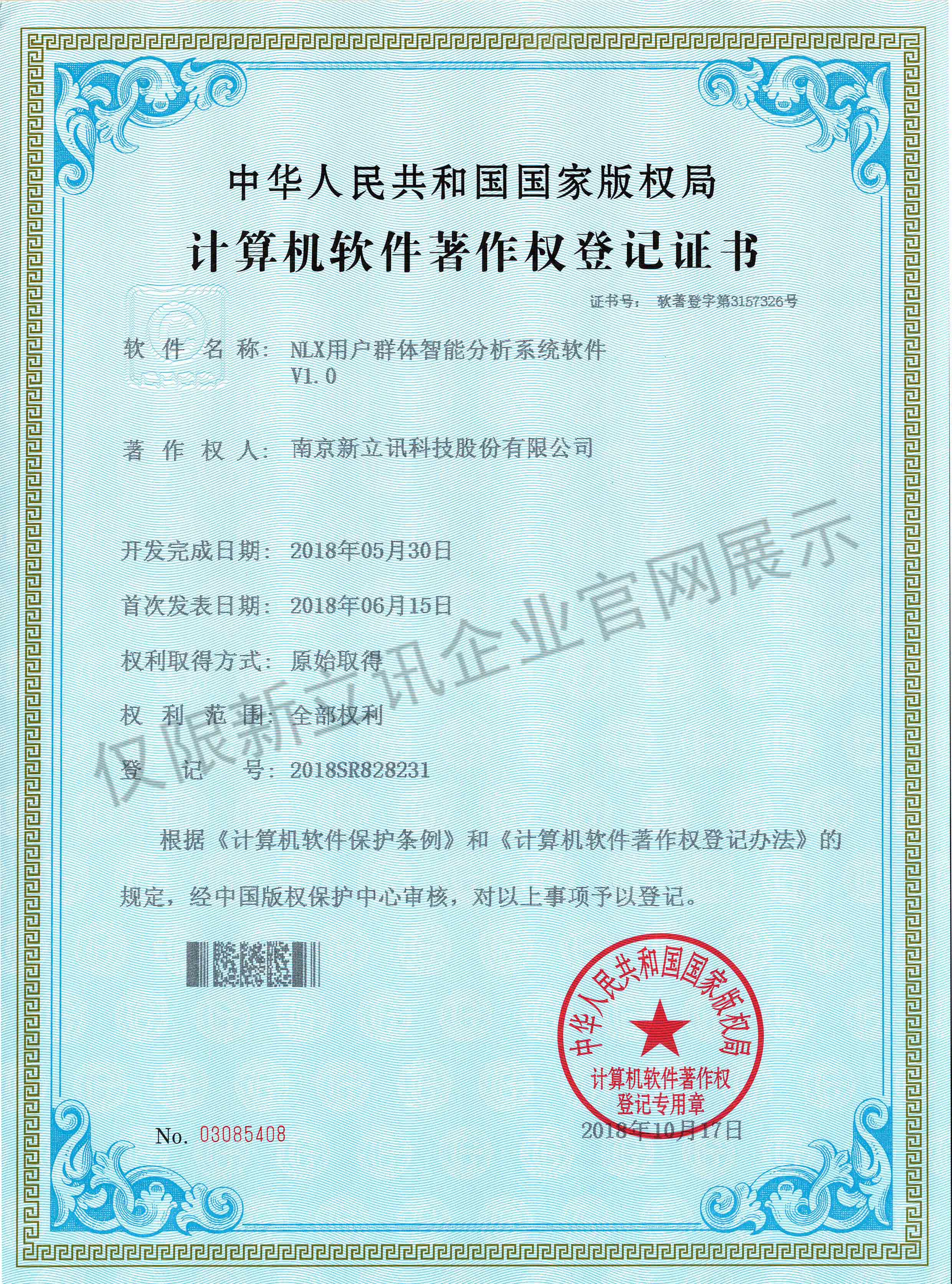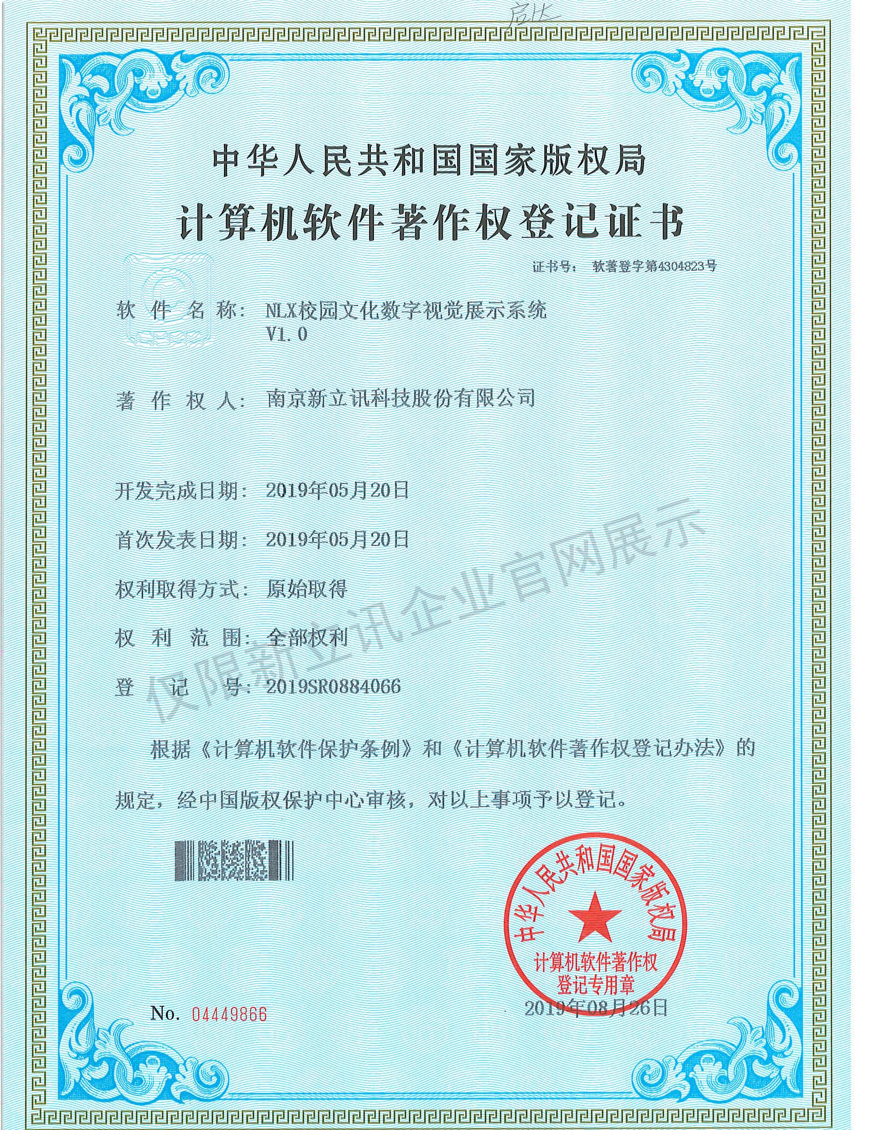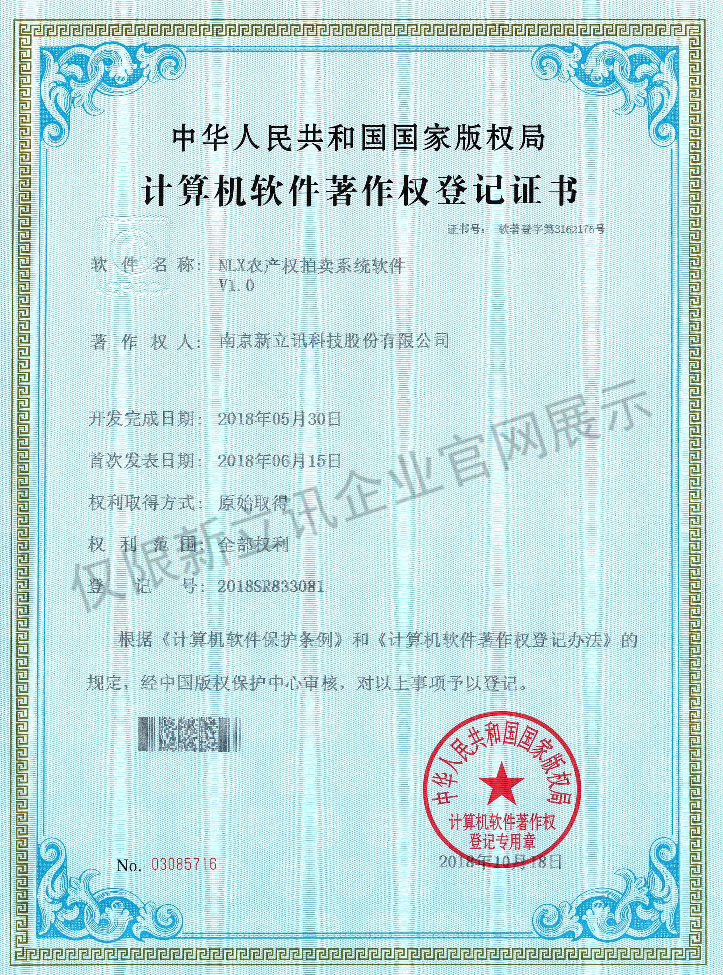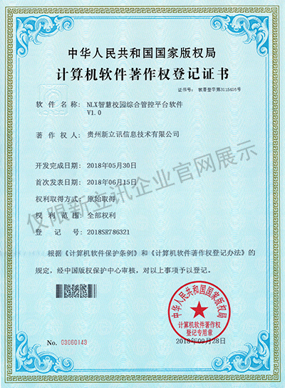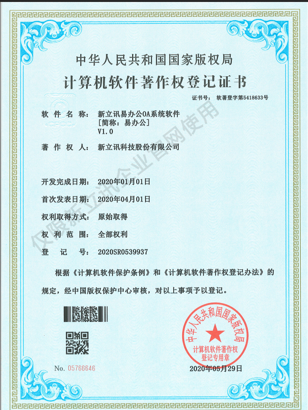 • 2016-07-20新立訊軟件著作權證書--NLX人臉考勤門禁管理系統V1.0查看