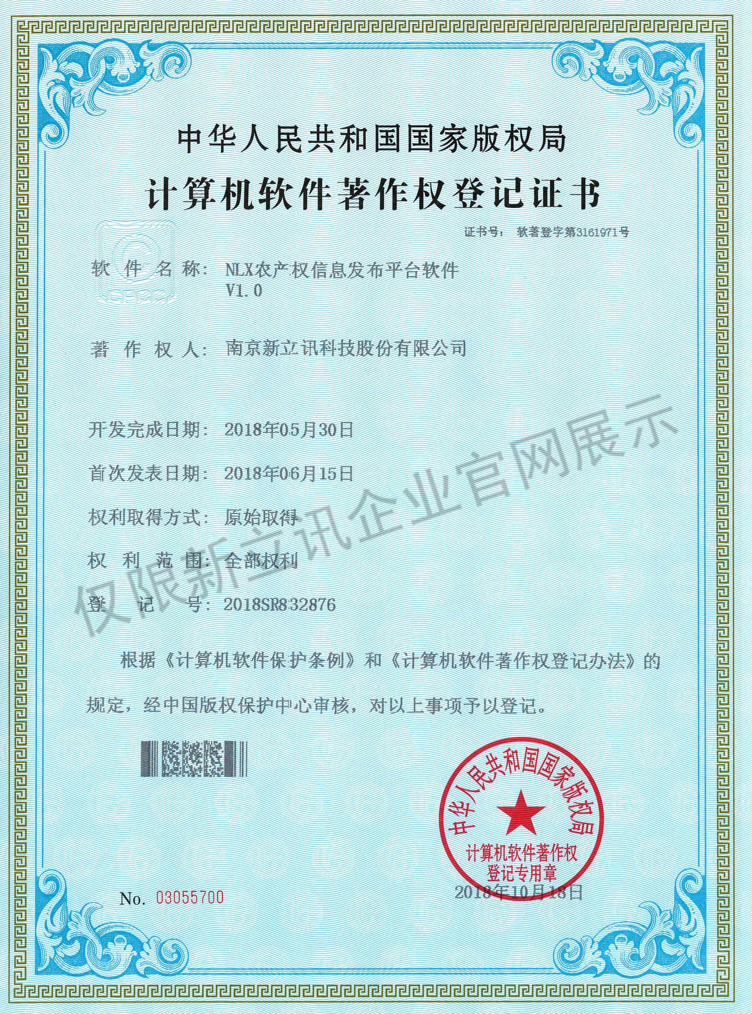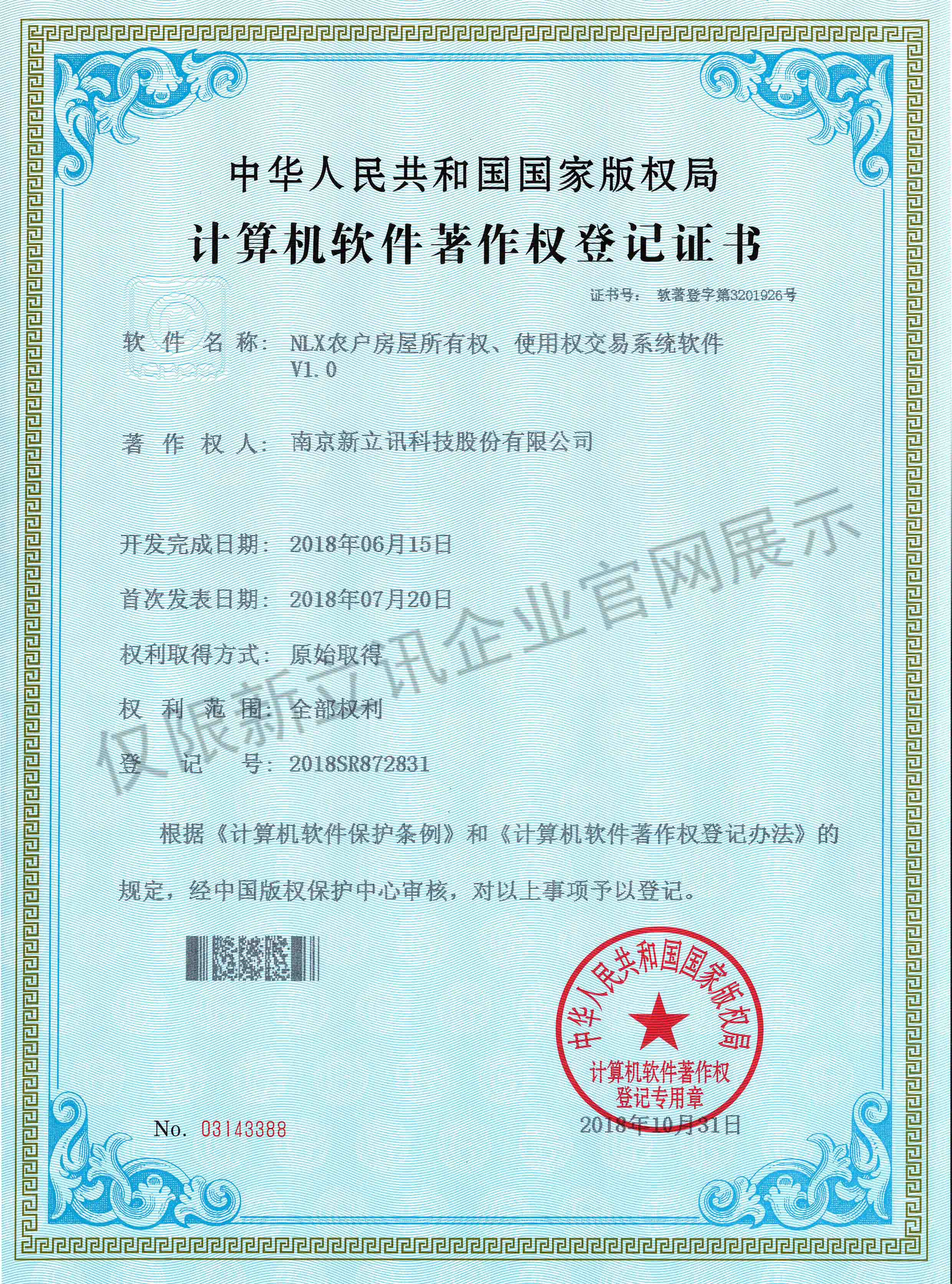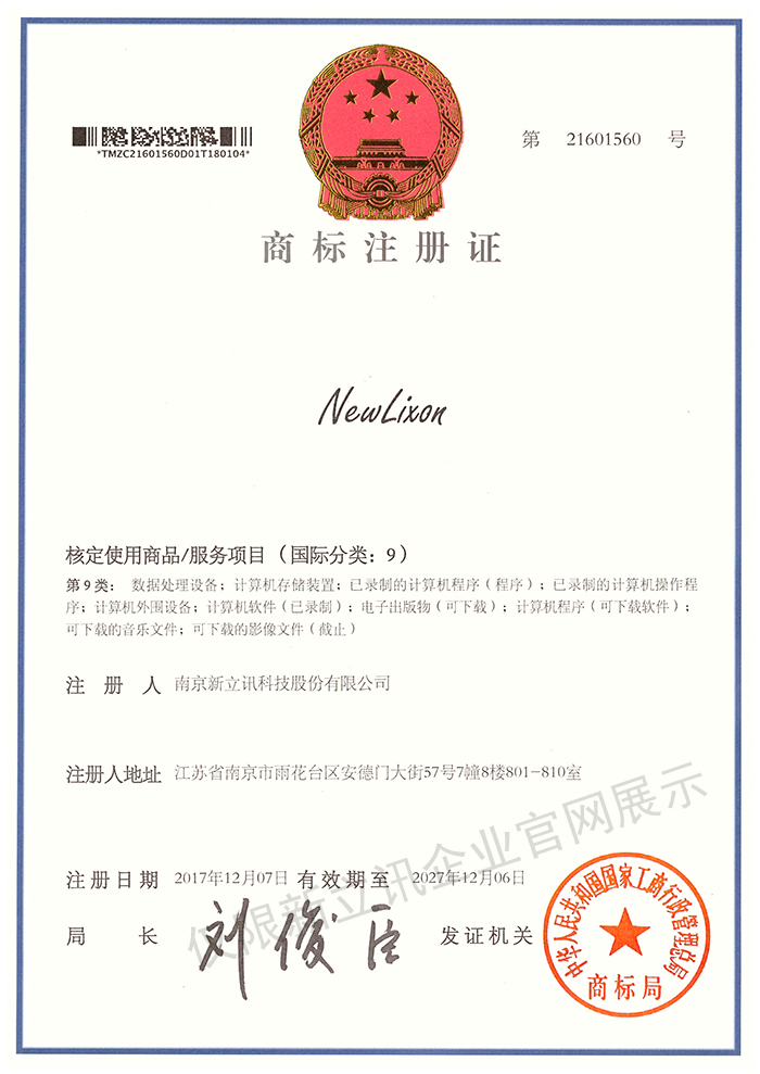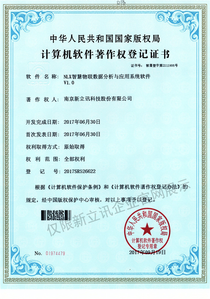 • 2016-07-20新立訊軟件著作權證書--NLX射頻門禁考勤管理系統V1.0查看