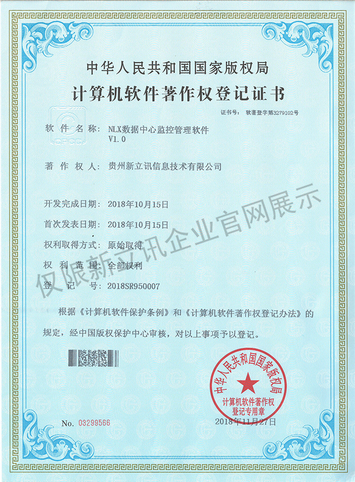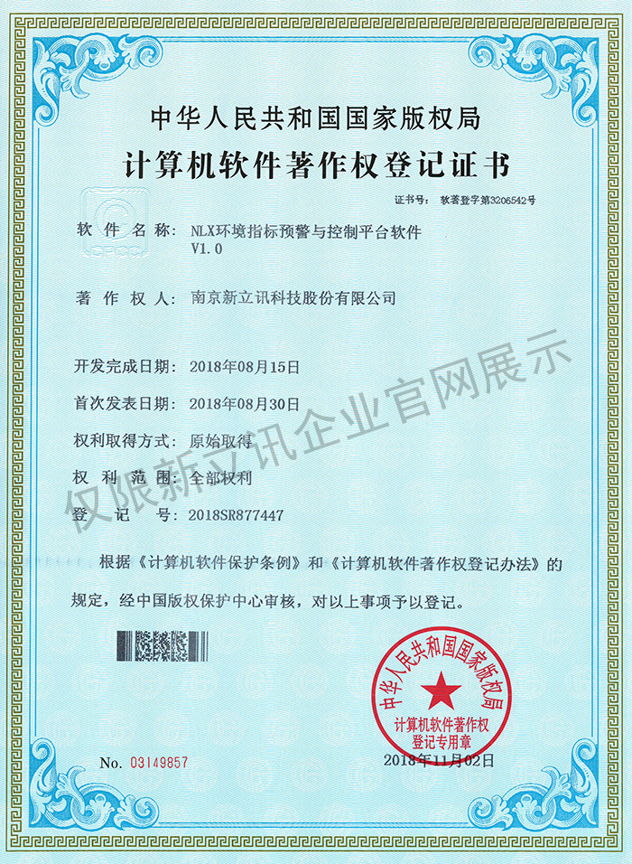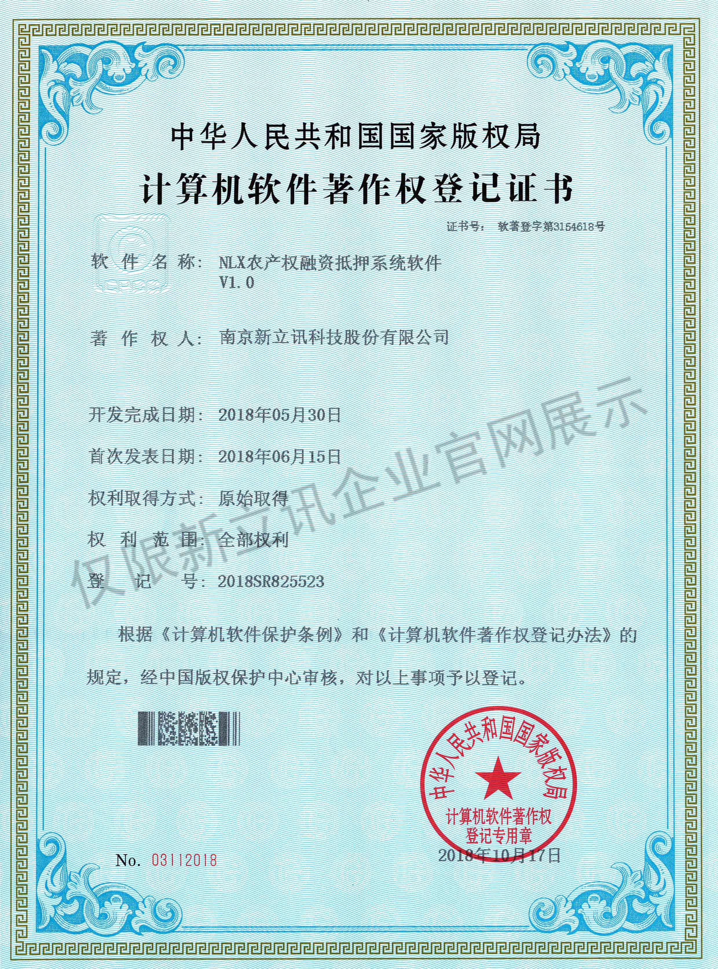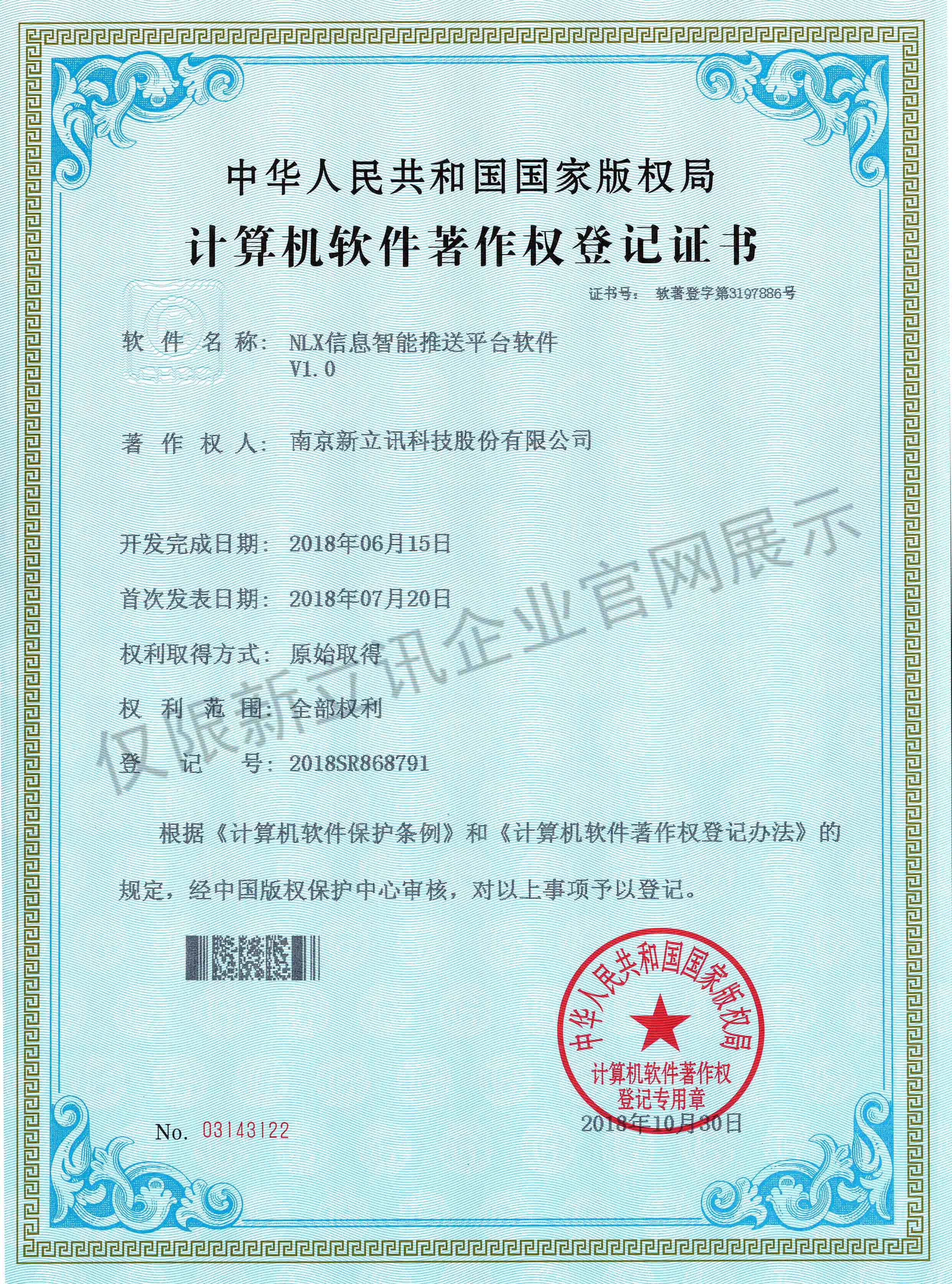 • 2016-07-20新立訊軟件著作權證書--NLX射頻門禁考勤管理系統V1.0查看