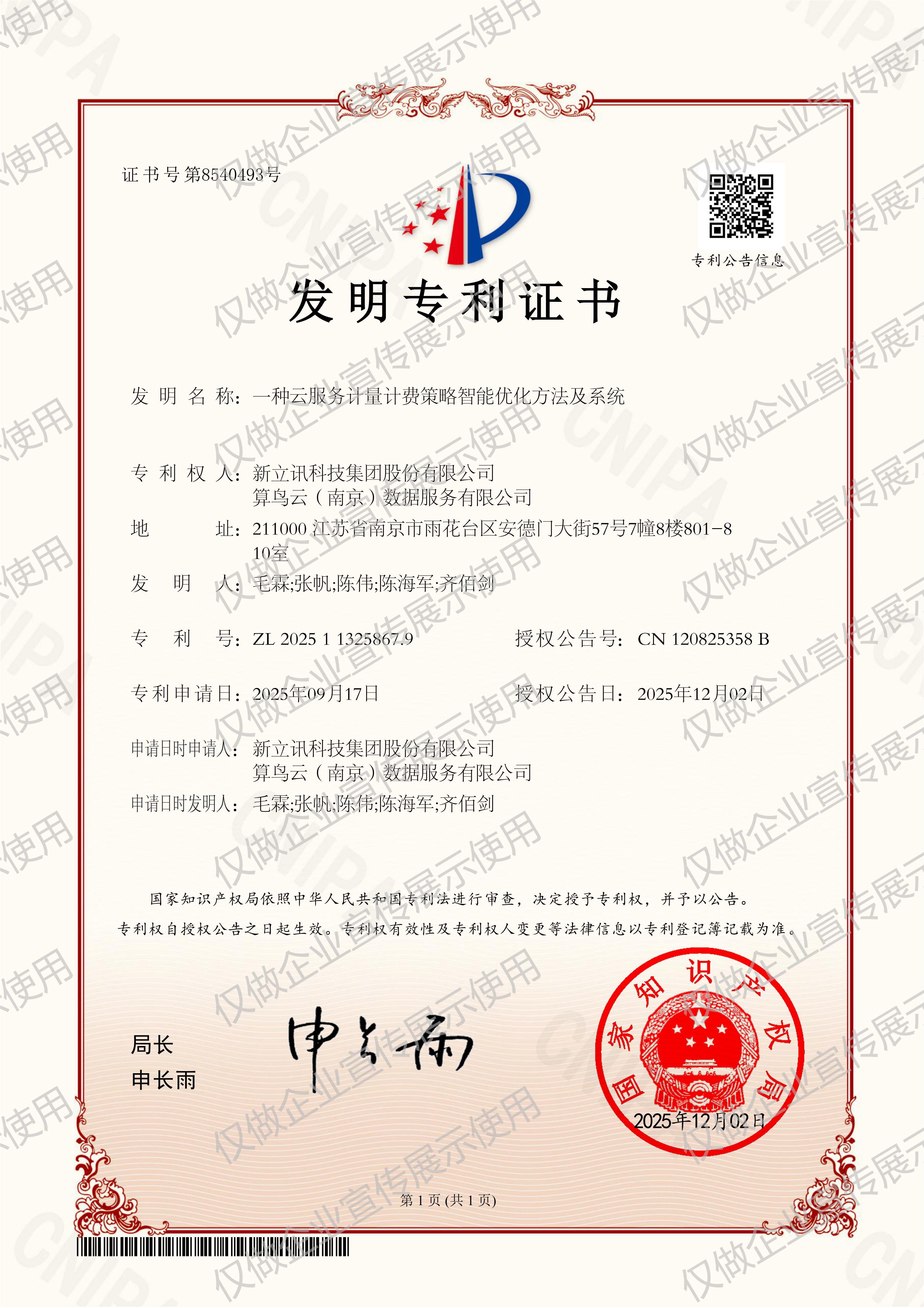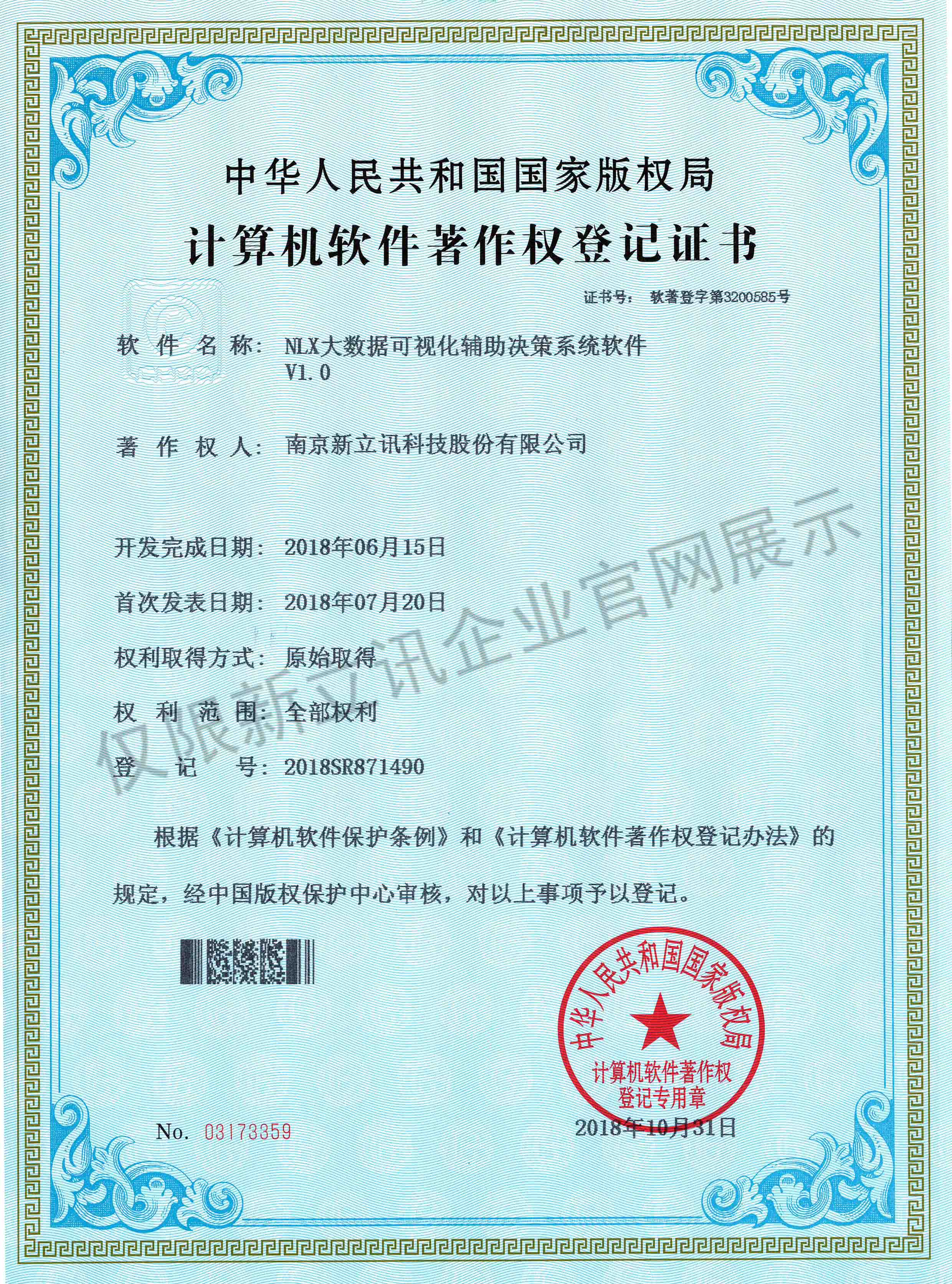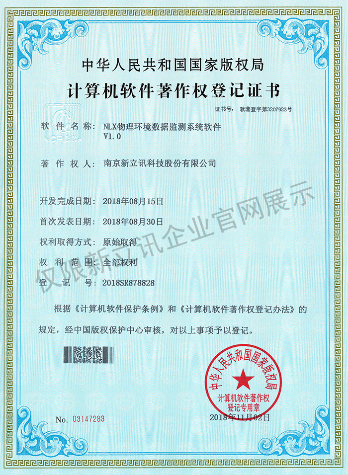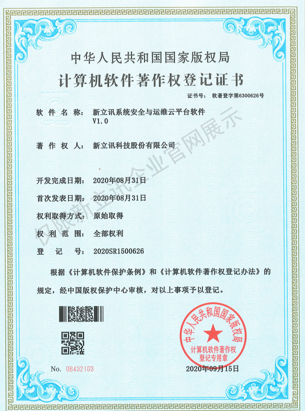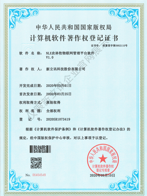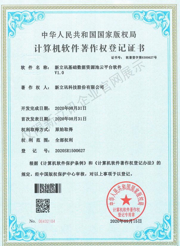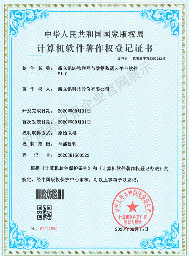 • 2020-12-28新立訊5G物聯網與數據監測云平臺軟件V1.0軟件產品證書查看