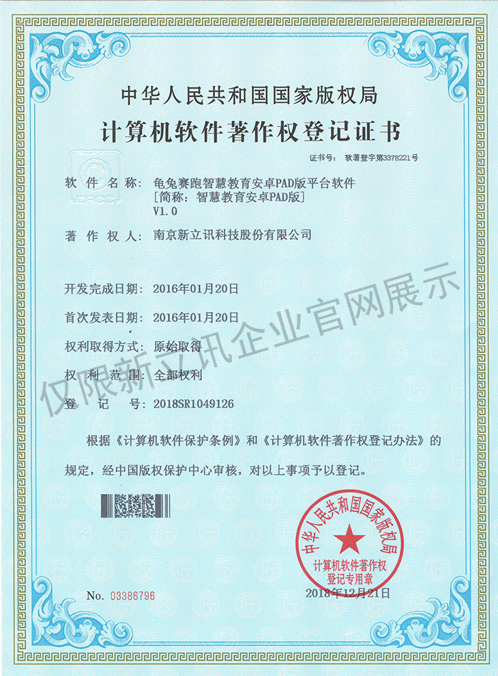 • 2020-12-28龜兔賽跑智慧教育安卓電視版平臺軟件V2.0軟件產品證書查看