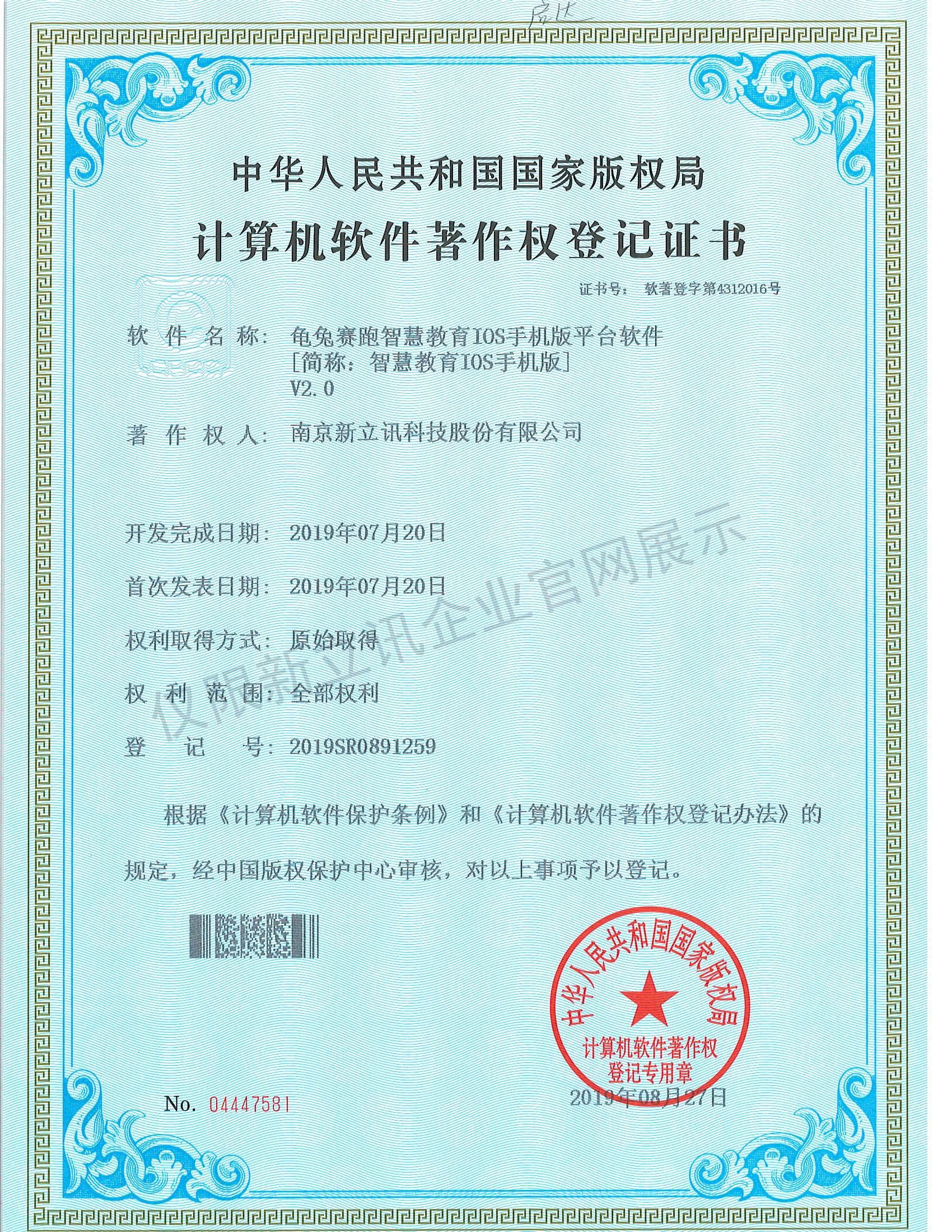 • 2020-12-28龜兔賽跑智慧教育IOS IPAD版平臺軟件V2.0軟件產品證書查看