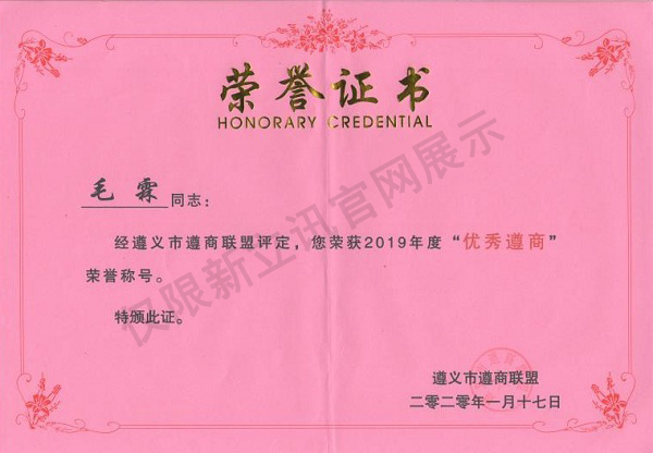 • 2020-02-282019年度“優秀遵商”牌匾查看