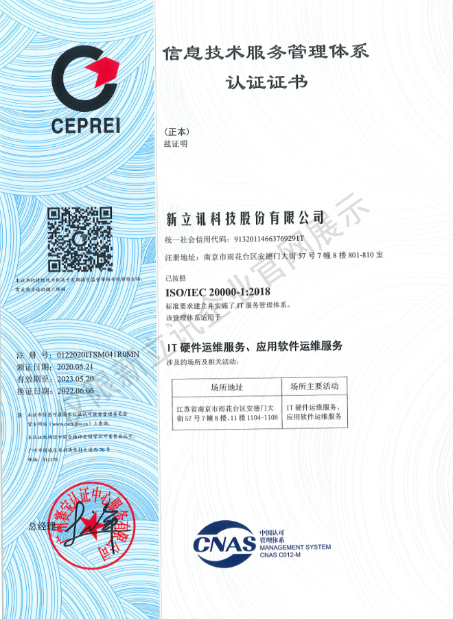 • 2020-12-28ISO27001:信息安全管理體系認證證書查看