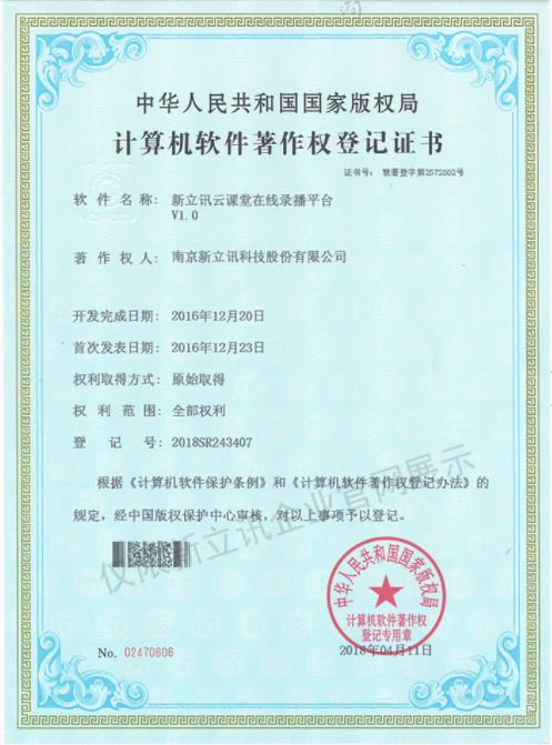 • 2016-07-20新立訊軟件著作權證書--新立訊音頻控制系統軟件V1.0查看