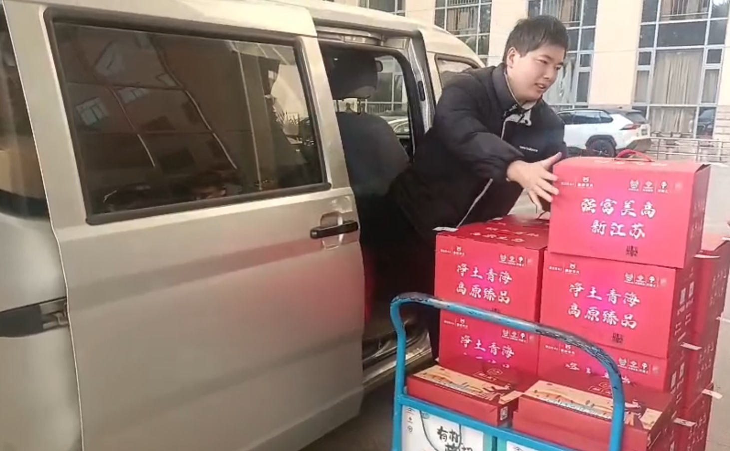 交匯點訊 “這是50箱牛肉,30箱羊肉,還有枸杞、藜麥?!?月22日上午,在南京市江東北路一家單位門口,兩名小伙將來自青海的產(chǎn)品從面包車上搬下后告訴該單位工作人員。