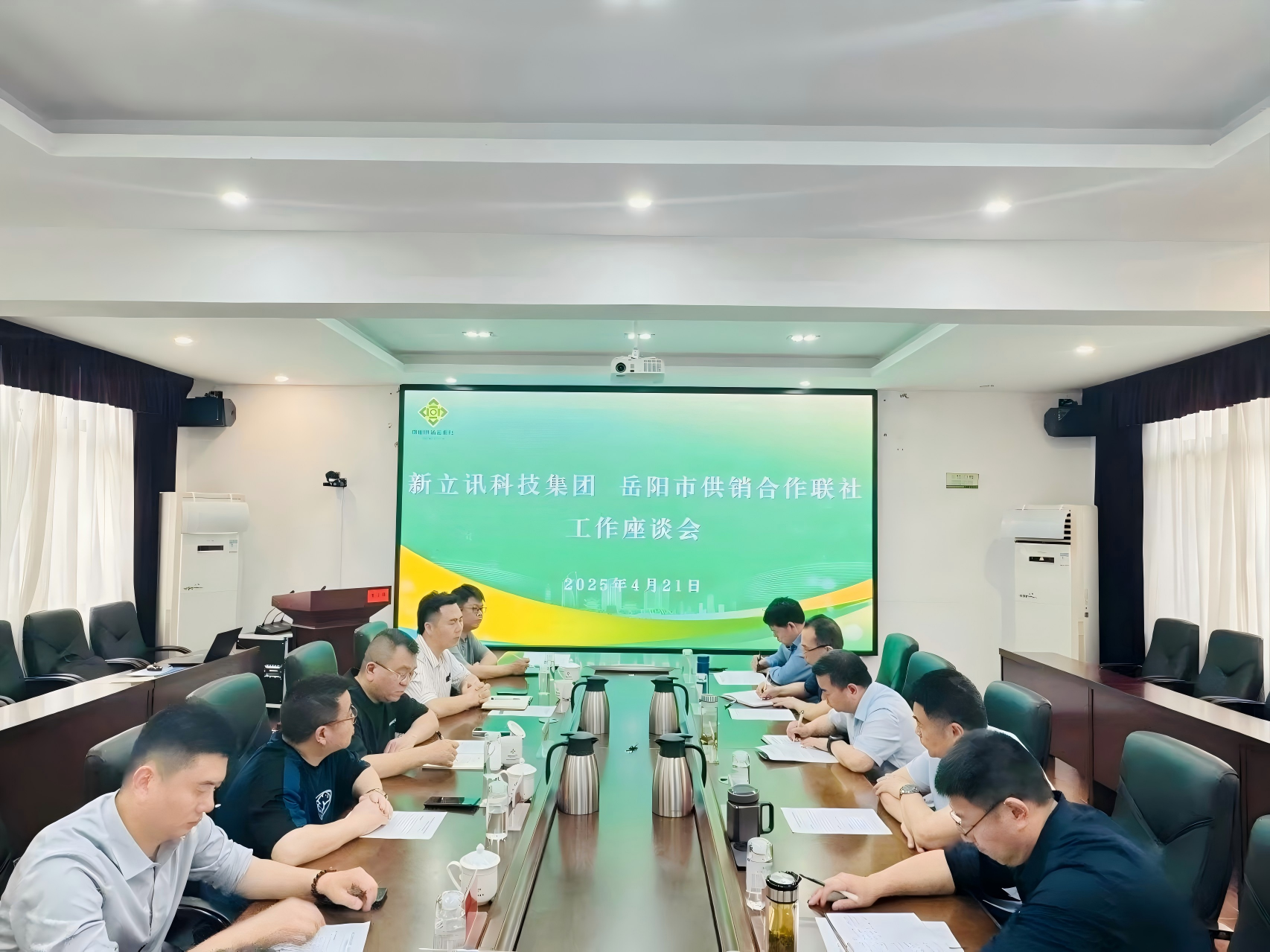 2025年4月21日,岳陽市供銷合作聯(lián)社&新立訊科技集團“華中農產品交易中心工作座談會”在岳陽市供銷合作聯(lián)社召開。岳陽市社黨委書記、理事會主任向風行,市社黨委副書記、監(jiān)事會主任羅海,市社黨委委員、副主任周傳龍、鄒變龍、周傲文,岳陽農發(fā)集團總工程師李政,新立訊科技集團董事長(兼青海、華東、川藏交易中心董事長)毛霖等與會嘉賓出席并參與座談。