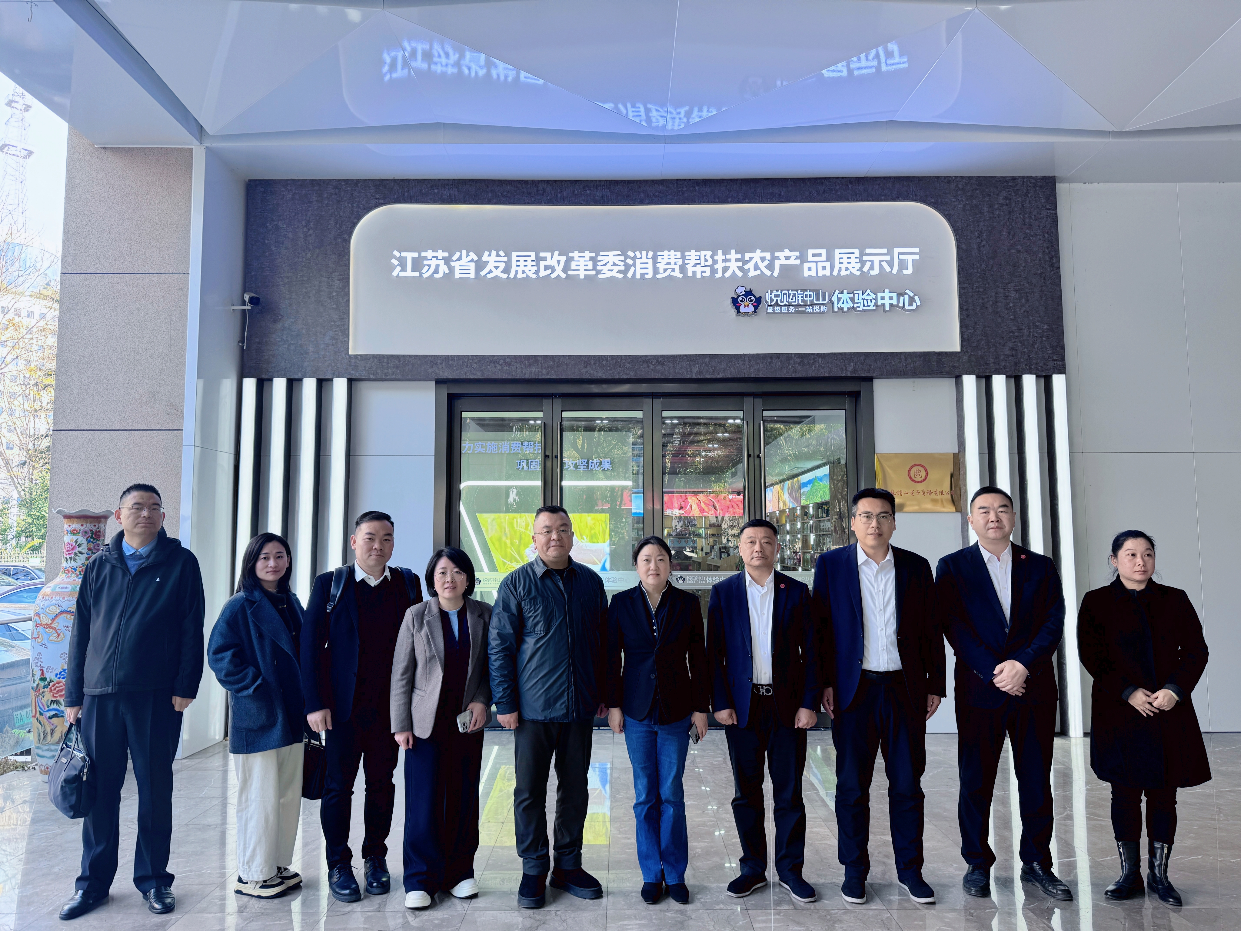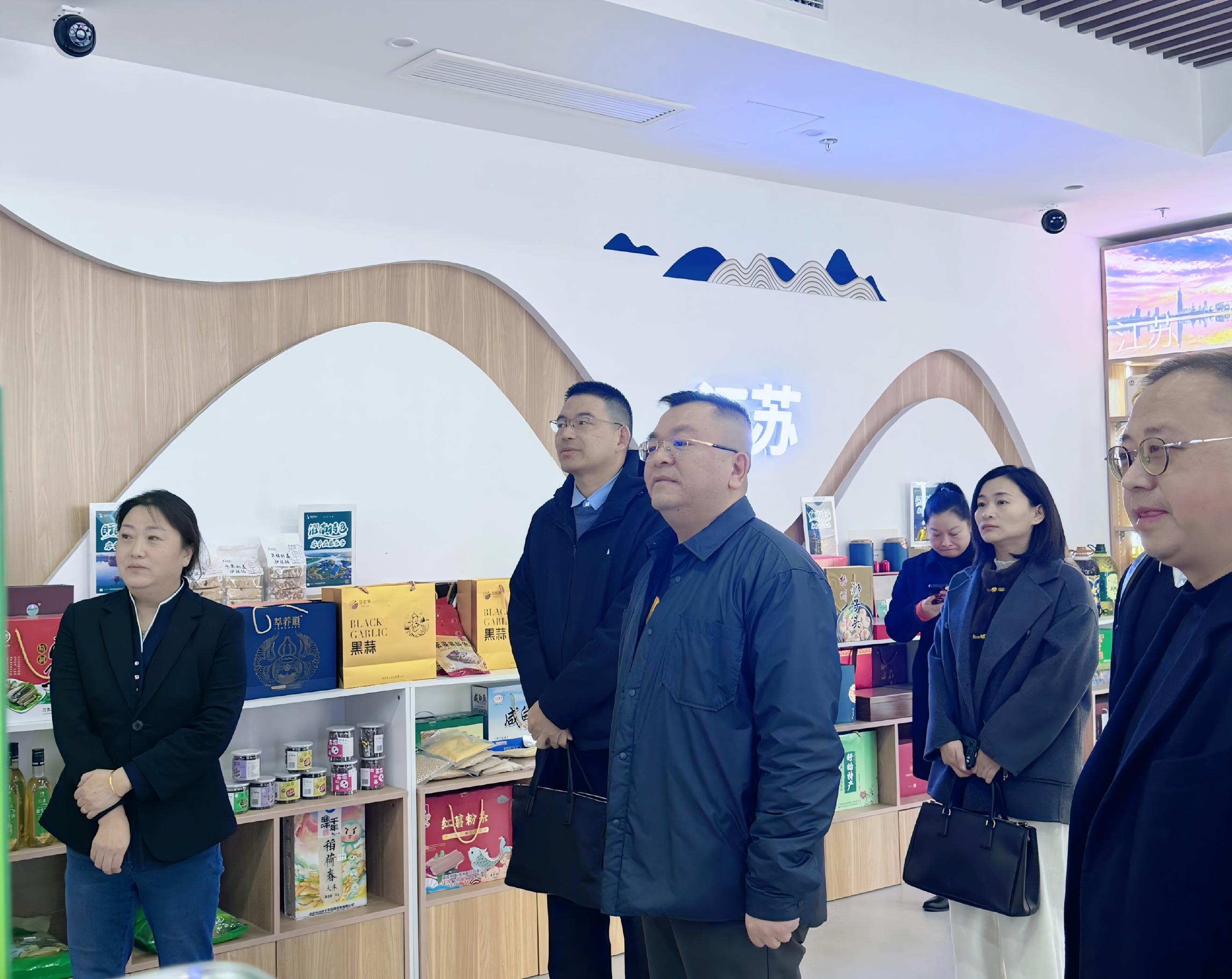 座談前,大家參觀了江蘇省發(fā)展改革委消費(fèi)幫扶農(nóng)產(chǎn)品展示廳悅購鐘山體驗(yàn)中心。展廳由江蘇鐘山賓館集團(tuán)有限公司與江蘇省發(fā)改委聯(lián)合打造,集展示、體驗(yàn)、銷售、洽談?dòng)谝惑w,設(shè)有農(nóng)產(chǎn)品展示區(qū)、云上專區(qū)、品鑒區(qū)及直播區(qū),通過“線上+線下”融合,為東西部農(nóng)產(chǎn)品搭建直通長三角市場(chǎng)橋梁和紐帶。