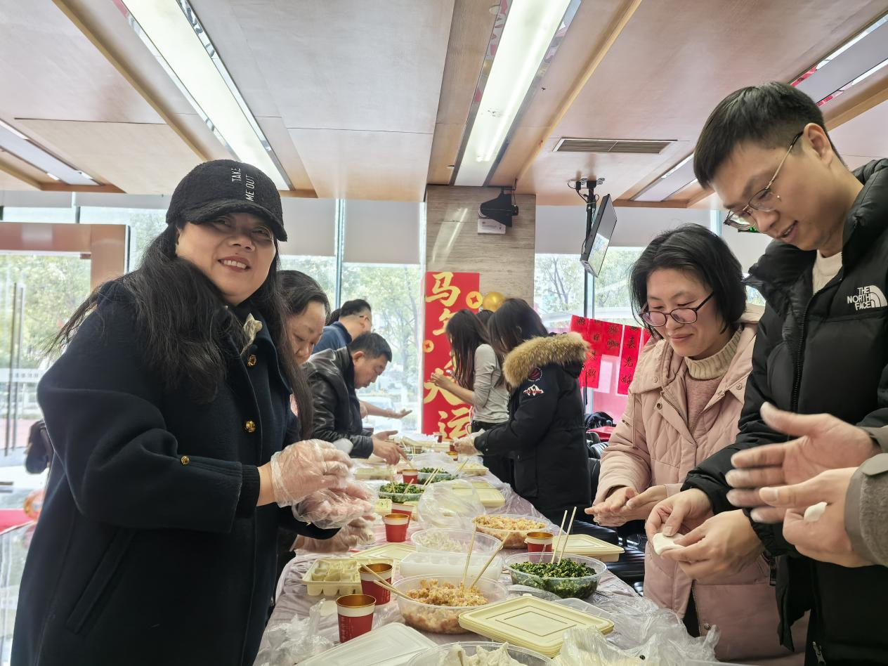 活動現場,新立訊黨員代表與社區黨員、其他共建單位成員分工協作,包餃子、揉面團、包湯圓。大家將餡料填入面皮,揉搓成圓潤的湯圓,現場歡聲笑語不斷。