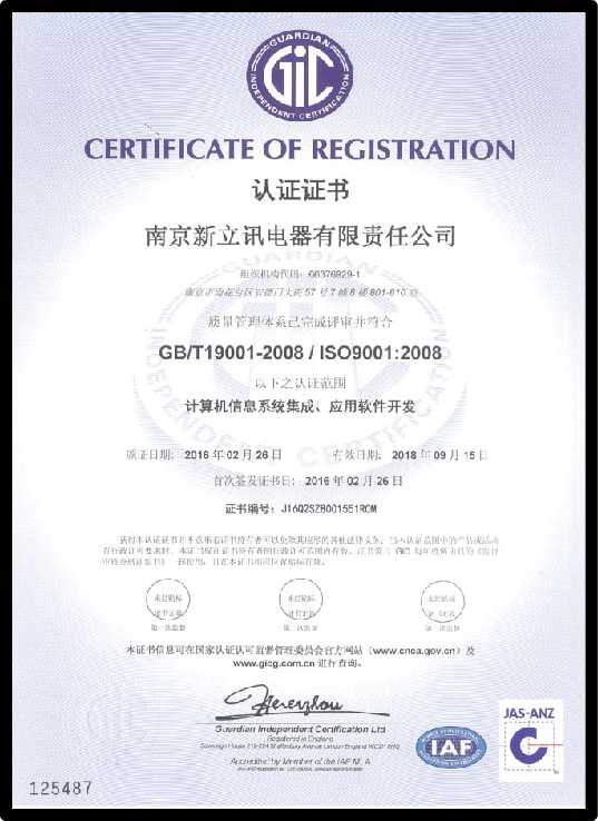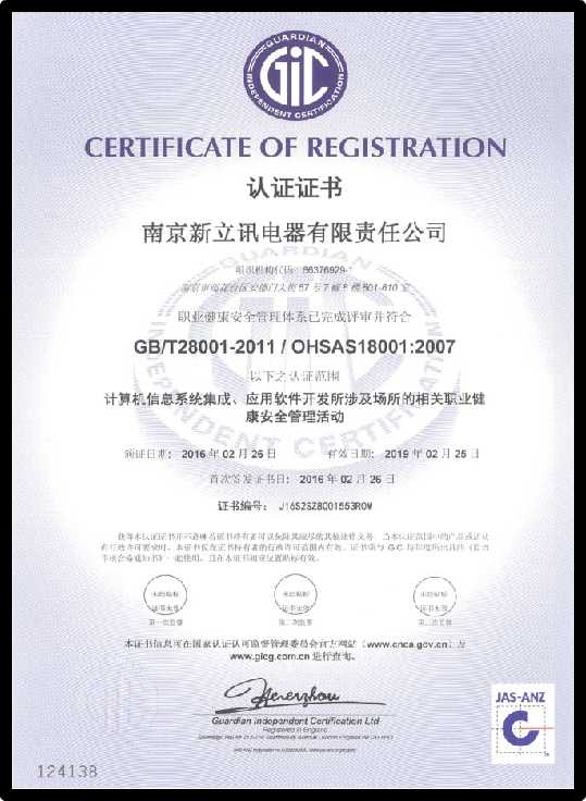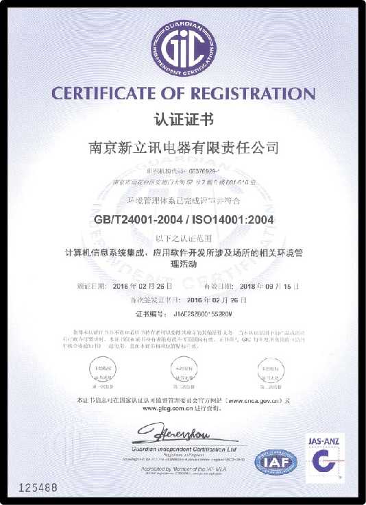 南京新立訊電器有限責任公司始終堅持標準化管理,對質(zhì)量、環(huán)境、安全等環(huán)節(jié)中的管理流程進行不斷完善,并通過有效運營,提高了全體員工的質(zhì)量與健康安全意識,也為進一步的市場開拓提供了強有力的支撐,提升了新立訊企業(yè)的形象及競爭力。