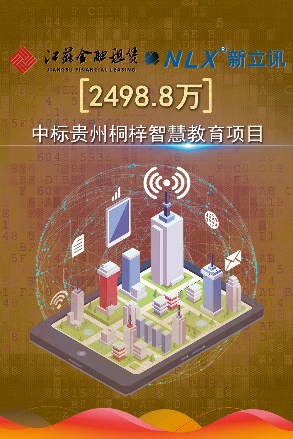 2018年10月31日,南京新立訊科技股份有限公司與江蘇金融租賃股份有限公司(簡稱“江蘇租賃”)組成聯(lián)合體中標貴州桐梓2498.8萬智慧教育項目,成為新立訊公司ITFS商業(yè)模式的首創(chuàng)案例。