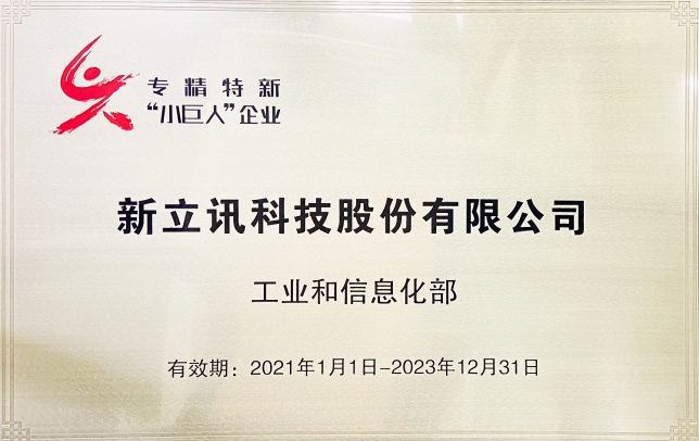 近日,新立訊獲工業(yè)和信息化部專精特新“小巨人”企業(yè)授牌(全國第二批)。