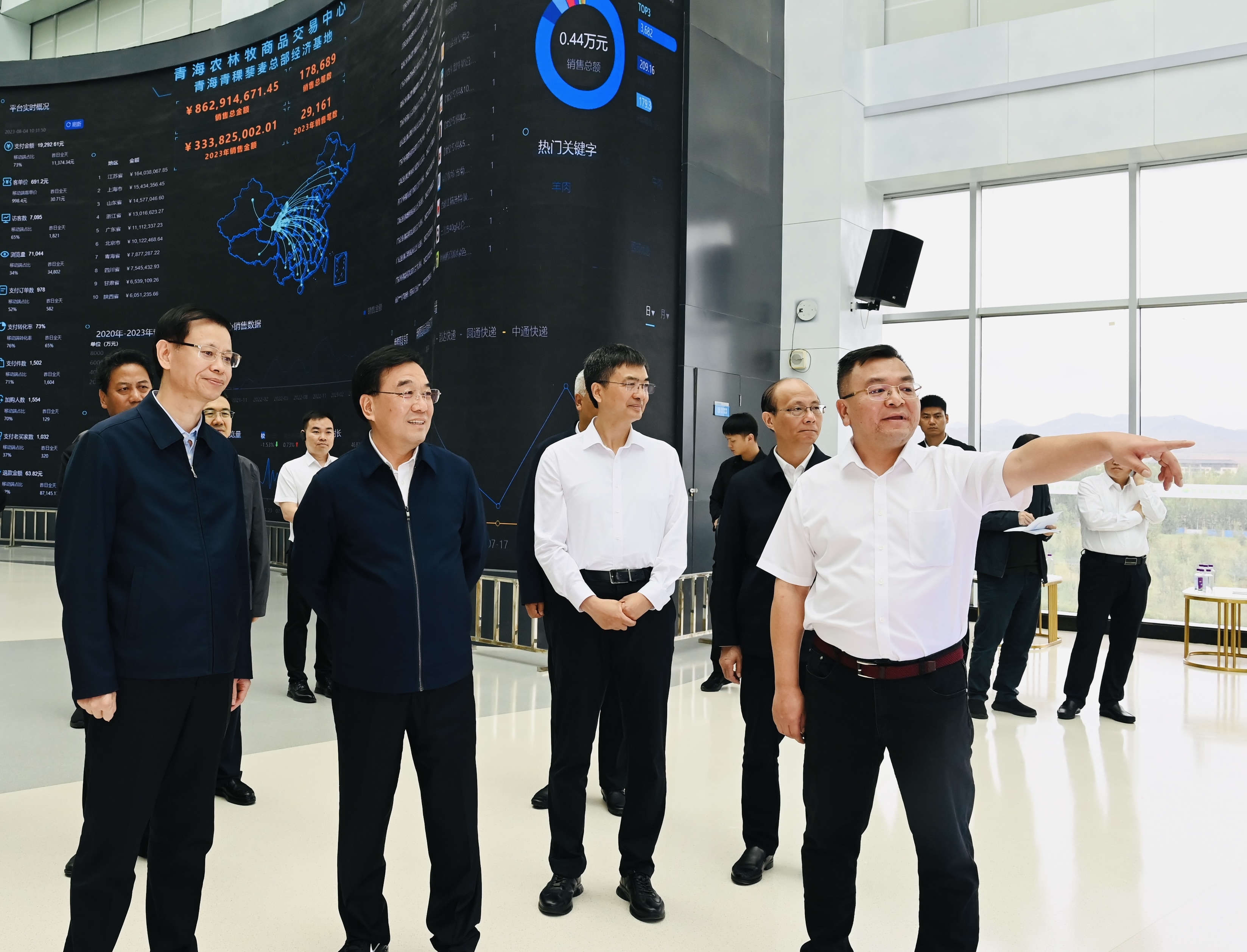 2023年8月4日上午,江蘇省委書記信長星、省長許昆林率江蘇省黨政代表團,在青海省委書記陳剛、省長吳曉軍等領導的陪同下蒞臨青海農(nóng)林牧商品交易中心參觀考察。